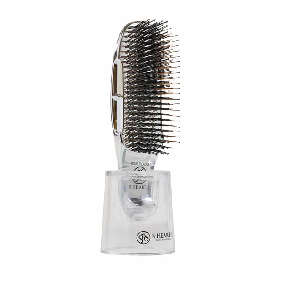 Offerte par la marque prestigieuse SMILE HEART STORY (dérivée de TOKIO INKARAMI), le modèle mini de la Scalp Brush + : une version nomade qui vous accompagne partout.